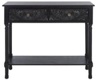 REVITALIZING LAVISH OLD WORLD CHARM FOR TODAY'S DECOR, THIS JOSIE CONSOLE TABLE IS A STRIKING CENTERPIECE IN ANY LIVING ROOM OR ENTRYWAY. JOSIE FLAUNTS MASTERFUL ARTISTRY WITH METICULOUSLY CARVED FLORALS ON ITS TWO SPACIOUS DRAWERS, AND A BLACK FINISH GIVES A MODERN TOUCH TO ITS CLASSICALLY STYLED FRAME.